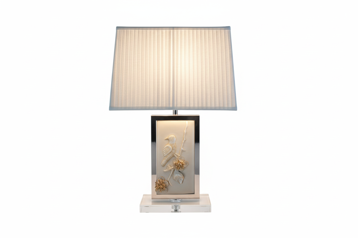 Dimensions: 14.5" x 8" x 19.5" HComposition: Hand Sculpted Leather, Polished Steel, Crystal Base